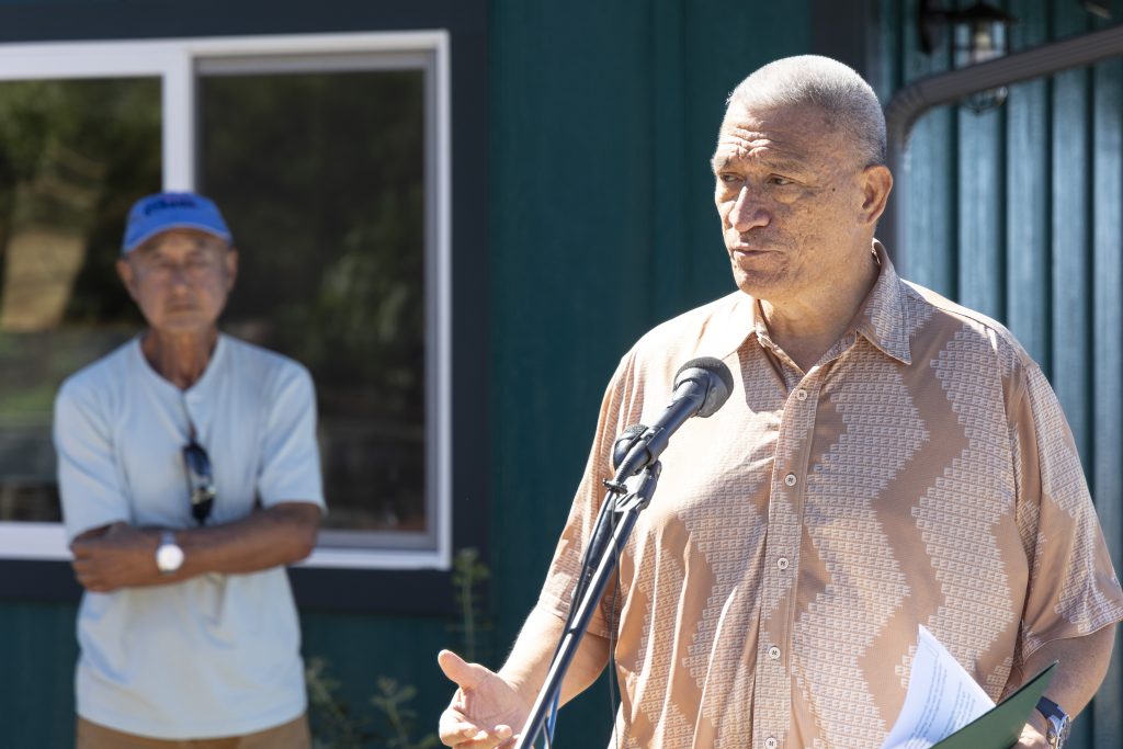 Mayor Richard Bissen was at the Kulalani Drive home Tuesday afternoon to congratulate Liu before a blessing by Kumu Kaponoʻai Molitau, director of the County Office of ʻŌiwi Resources.