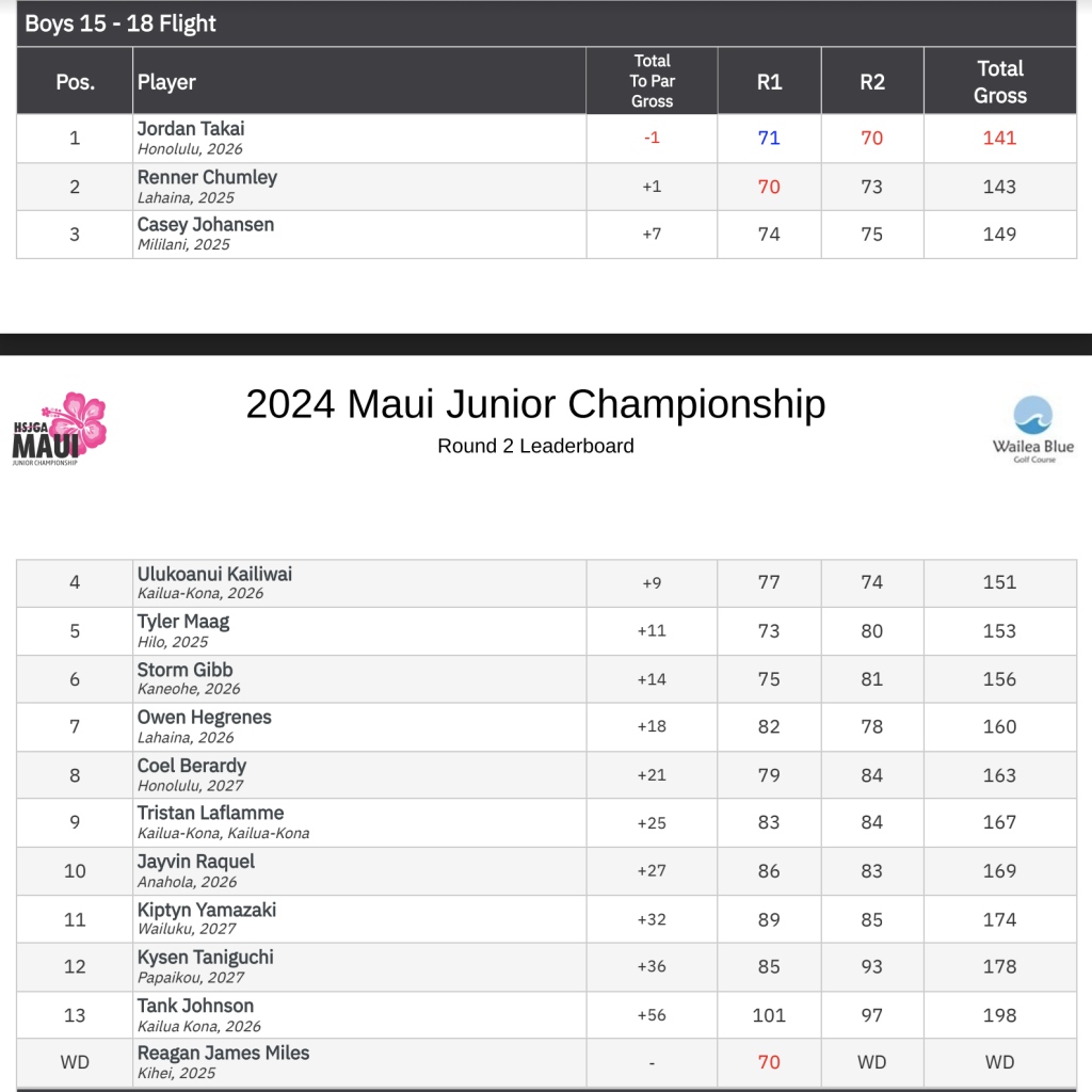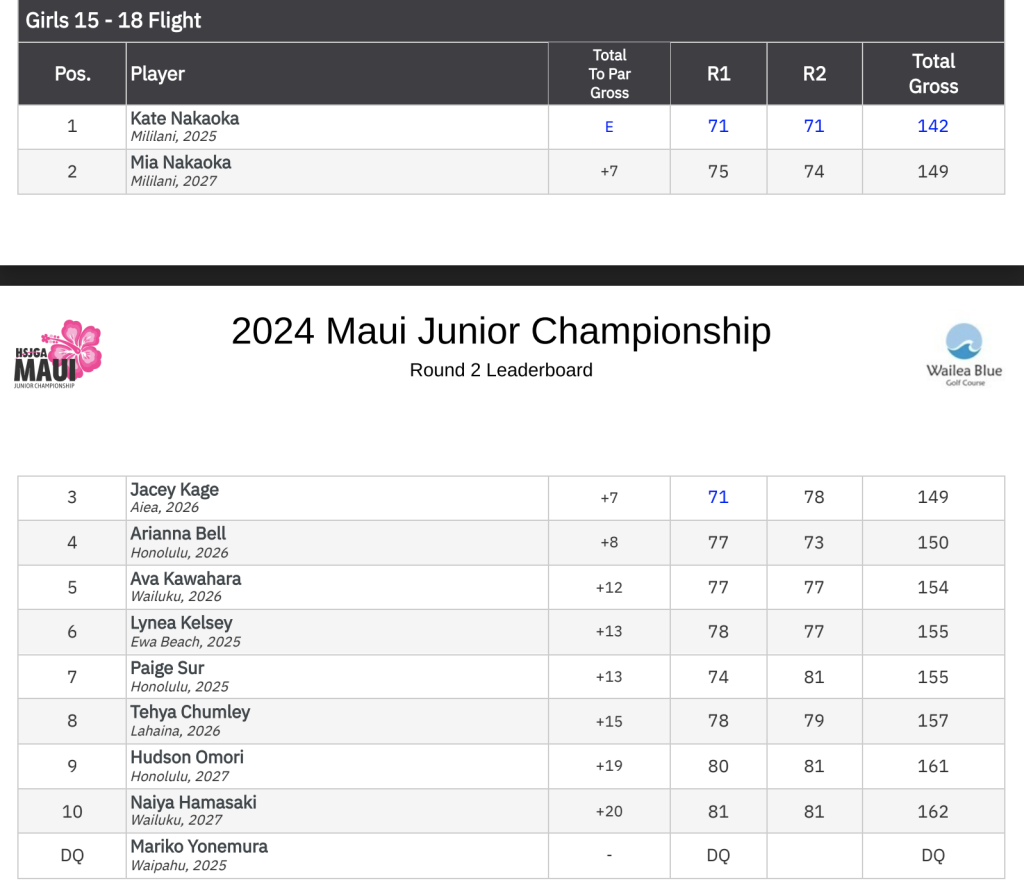 The 2024 Maui Junior Championship winners were: