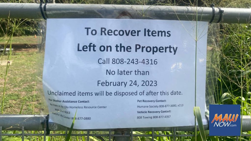 MEO said it reached out to a local shelter provider to assist any persons in need of relocation assistance as well as the Maui Humane Society to care for any animals left on the property. The belongings of trespassers will be held for 30 days and can be recovered by contacting MEO at 808-243-4316.