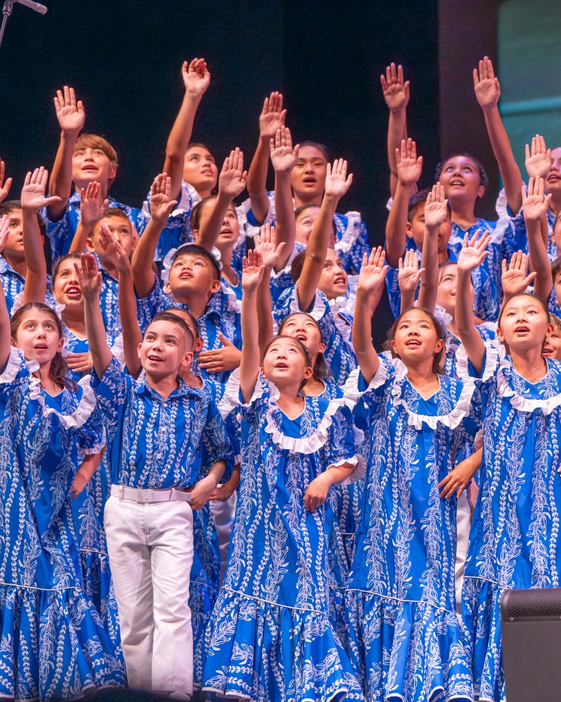 The Kamehameha Schools Children’s Chorus was organized in 1988 by KS music teacher, Suzanne Kaʻupu Soon and has been under the direction of Lynell Bright since 1989. Consisting of 100 members, the chorus is made up of fourth, fifth and sixth graders, ages 9–12, from the Kamehameha Schools Kapālama Campus elementary division.