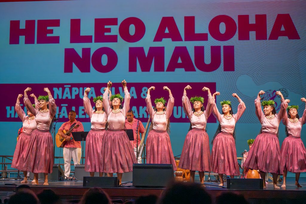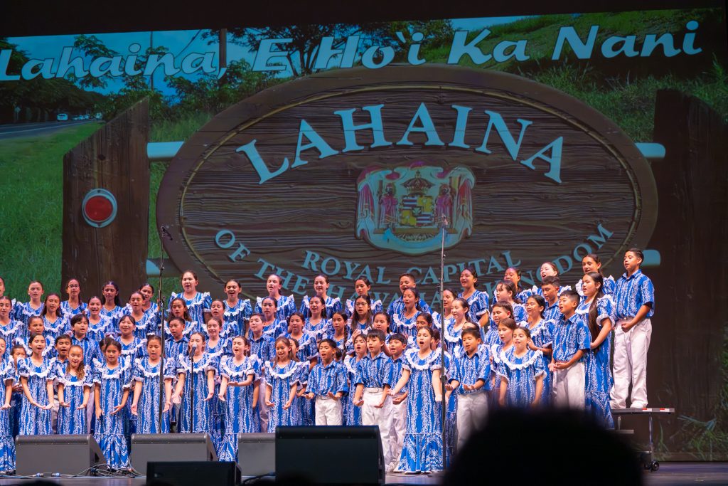Kamehameha Schools Children’s Chorus hosted a free community concert Friday night at the Maui Arts & Cultural Center. The concert, He Leo Aloha No Maui, drew nearly a thousand people to “share the gift of mele to bring healing and hope to the people of Maui,” according to the organizers. Children from the Children’s Chorus sang “O Lahaina, E Hoi Ka Nani” during the event.