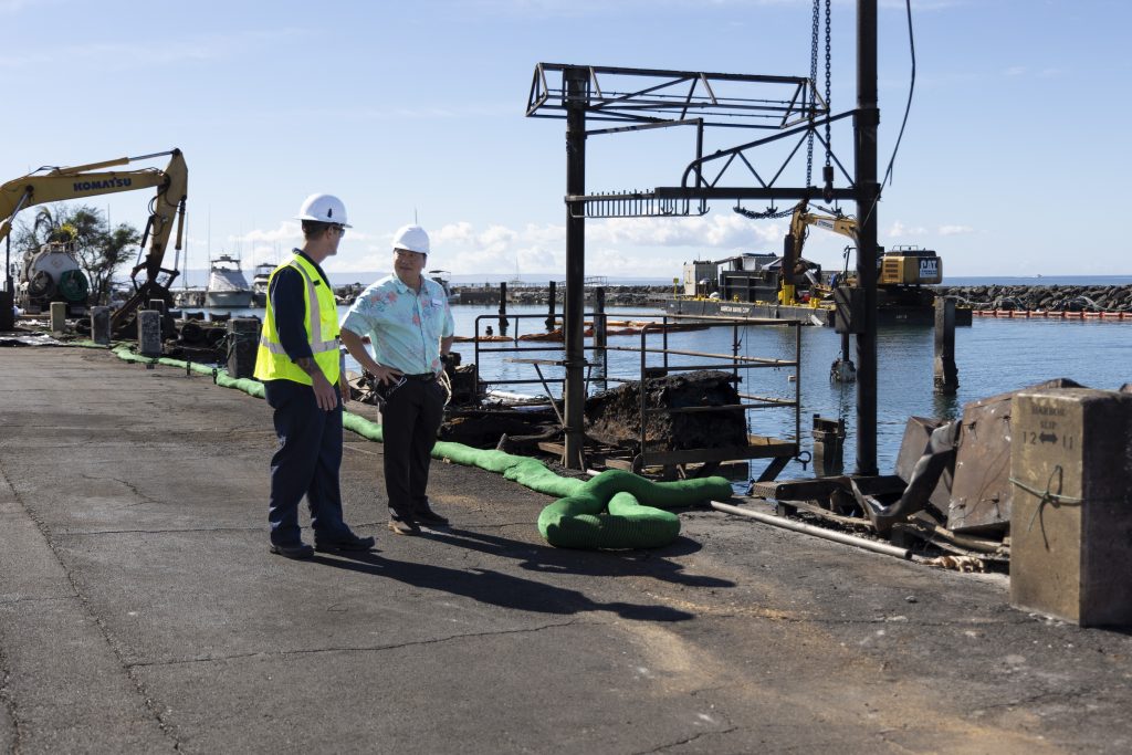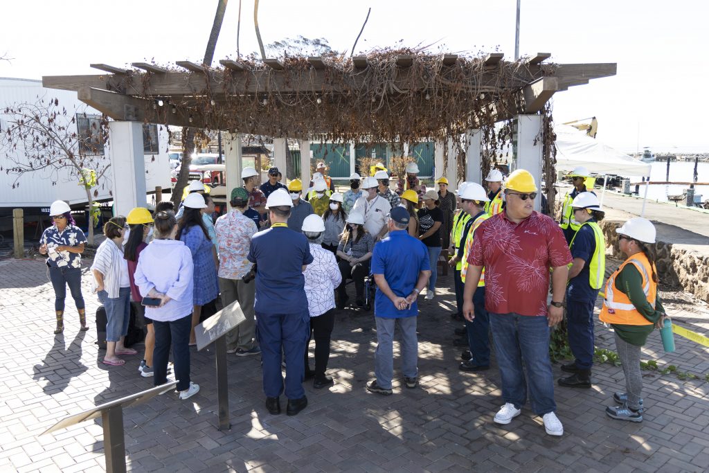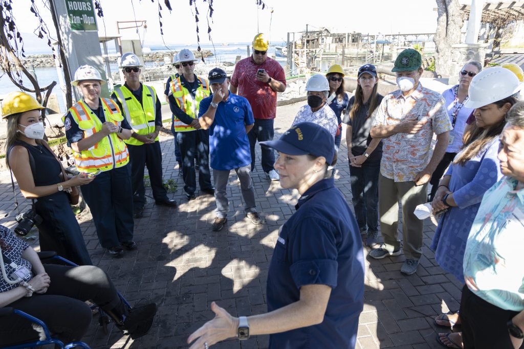 During the visit to Lahaina Harbor, the US Coast Guard provided a briefing on the status of rebuilding efforts, including search and rescue operations and the overall response to the harbor’s recovery.