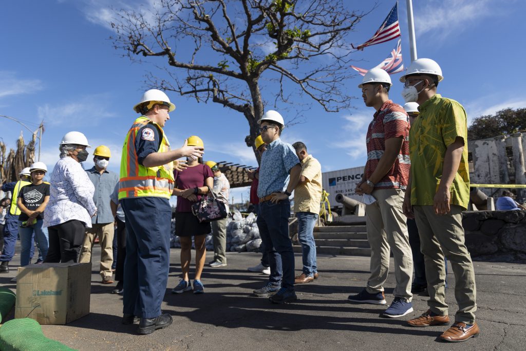 Members of the House Finance Committee, led by Chair Kyle T. Yamashita (D-12, Upcountry Maui), visited various sites in the Lahaina wildfire disaster zone on Thursday to receive an update on recovery efforts from Federal and County officials, and identify key priorities for the upcoming legislative session.