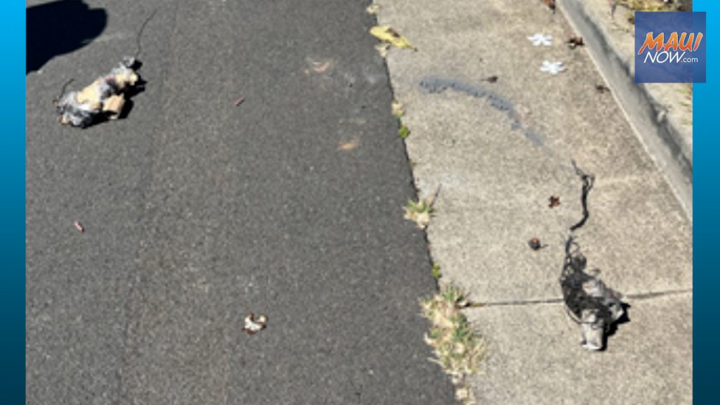 Wailuku patrol officers responded to the area near the intersection of Lono Ave. and Hina Ave. in Kahului for a suspicious item on the roadway at around 7:51 a.m. on Tuesday, July 23, 2024. Upon arrival, officers located what appeared to be an Improvised Explosive Device (IED) on the shoulder of Lono Ave., near the fence line of Kahului Elementary School.
