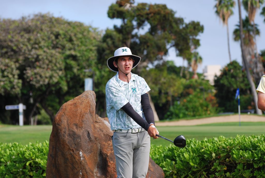 Following Sunday’s round, the Hawai‘i Rainbow Warrior golf team held a clinic for keiki in the Maui Junior Golf Association and Lahaina Junior Golf Association. Attendees received swing lessons, learned about college recruiting and were able to talk with Hawai‘i’s student-athletes.