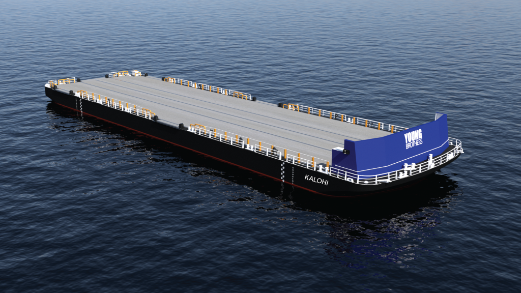 Entering service in December 2024, the Kalohi and Nāulu barges bring new technology and capabilities that will enhance services by increasing capacity, flexibility, and reliability. The Kalohi is specifically designed to serve smaller ports such as Kaunakakai (Molokaʻi ) and Kaumalapau (Lāna‘i). They are the first new barges in over 20 years to enter the Young Brothers fleet.