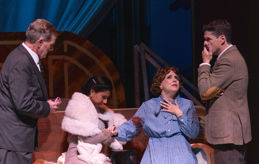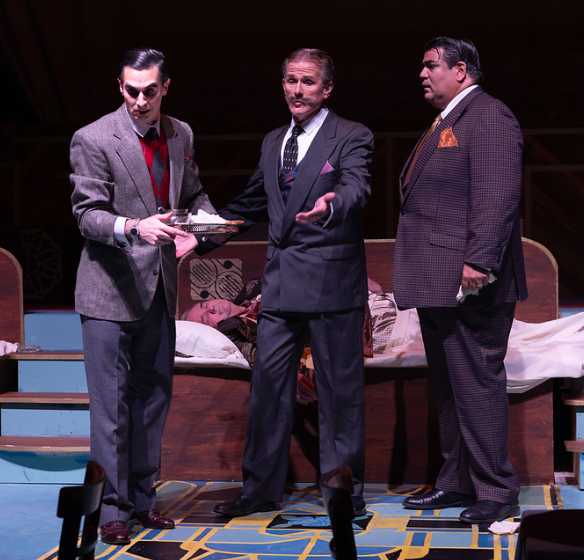 “Jennifer and her group of volunteers rival some of the best costumers I have worked with in my 30-plus years as a professional actor,” said Actor Paul Jackel, who plays Hercule Poirot. “Her attention to detail is impeccable, and I especially appreciate the fact that she is so open to input from her actors. For example, does Poirot have a pocket watch or wear a wrist watch? What exactly does the infamous Poirot mustache look like? (The one I wore onstage was selected from an array of six or seven.) These may seem like insignificant details, but they speak volumes about the character. Jennifer has made my stepping into Poirot’s shoes—both literal and figurative—at every performance such a joy.”