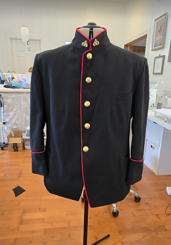 Fellow Sewing Hui volunteer Elaine Gima said the work brings here a source of joy. “The company of others who find satisfaction in giving our time feeds our souls while it nurtures our community. My love for sewing makes it all worthwhile. Specifically for me, seeing a beautiful piece of fabric immediately conjures up a sewn garment. So when Jennifer said we needed a men’s smoking jacket but we had only a small piece of gorgeous fabric, it became a challenge for me to make it work. So fun to see the finished product on stage looking good,” said Gima.
