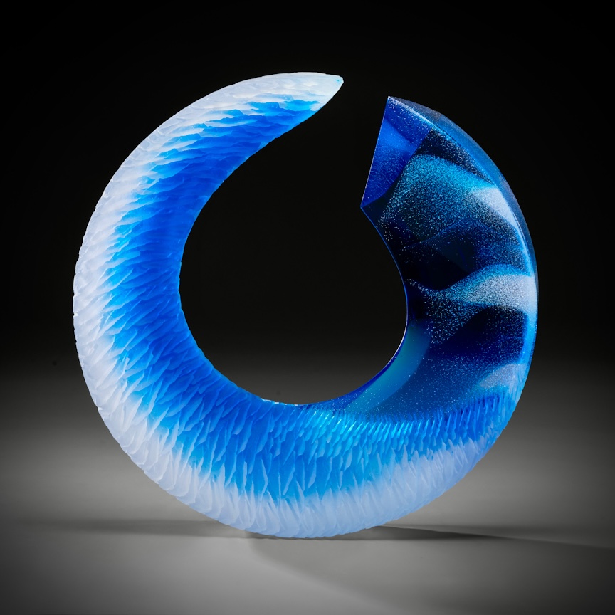 Award-winning, contemporary, abstract glass sculptor known for melding glass and steel.