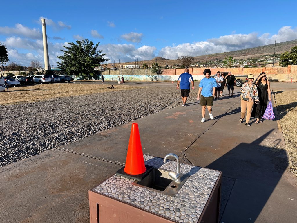 • A water fountain had been in the middle of the courtyard of Sacred Hearts School in Lahaina. After the wildfire destroyed classrooms and the cafeteria, the school relocated temporarily to Sacred Hearts Mission Church in Kapalua and then to a site mauka of the Kāʻanapali Beach Resort. PC: Brian Perry