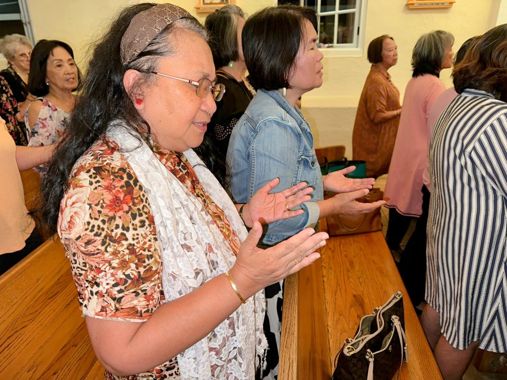 • Wailuku resident Joybelle Agustin prays Our Father during Mass on Wednesday at Maria Lanakila Church in Lahaina. PC: Brian Perry