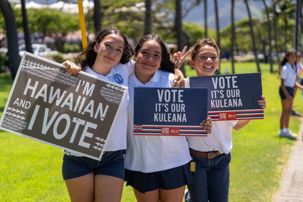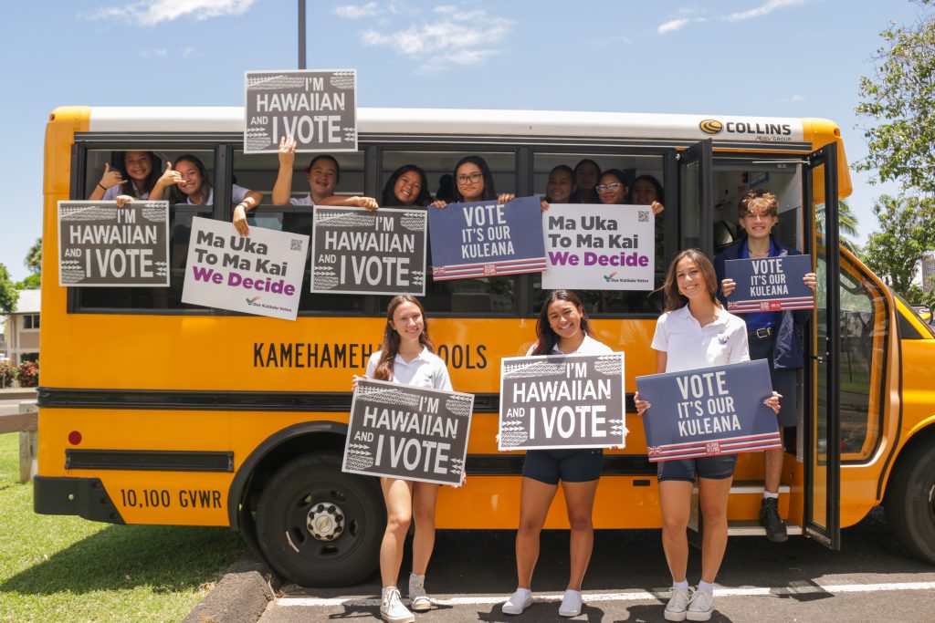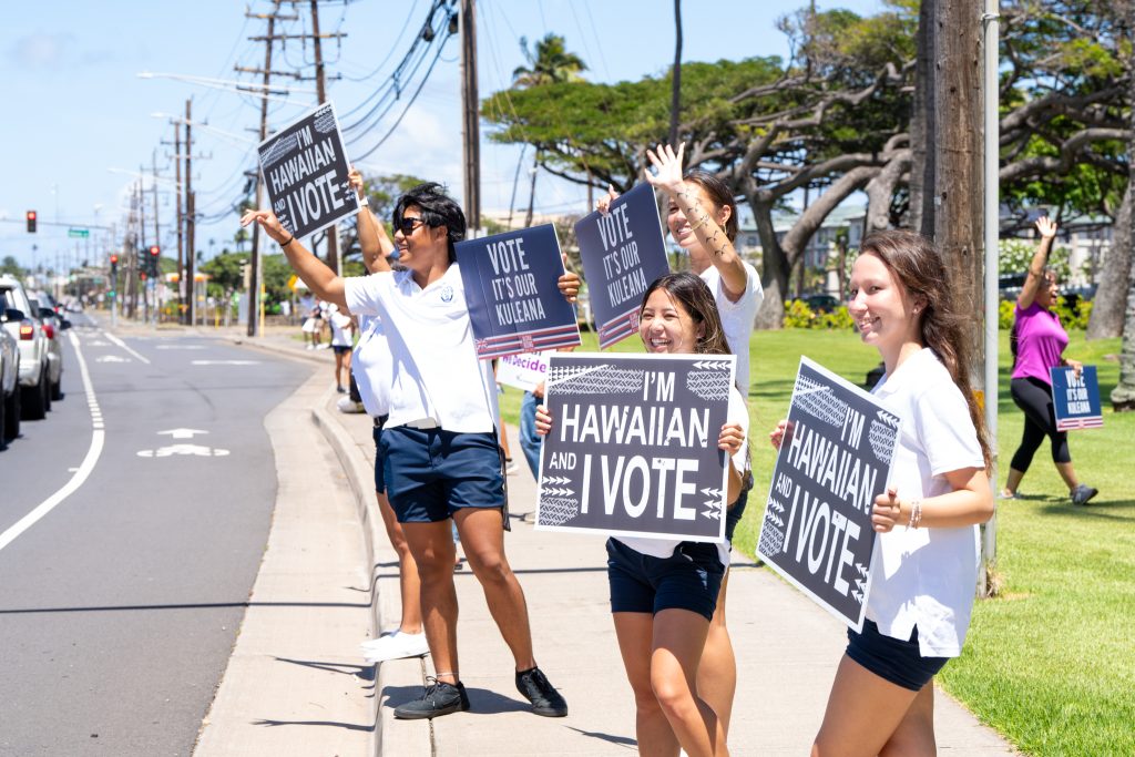 With a focus on rallying ʻōpio first-time voters, Our Kaiāulu Votes also partners with schools across Hawaiʻi, including Kamehameha Schools Kapālama, Kamehameha Schools Hawaiʻi, Kamehameha Schools Maui, Kanu o ka Aina Public Charter School, Ka ʻŪmeke Kāʻeo Public Charter School, Ke Kula Kaiapuni ʻo Pūʻōhala, UH Office of the Vice President for Community Colleges and Windward Community College.